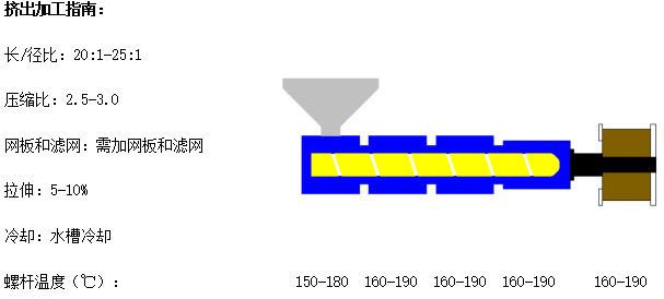 B:建议加工该材料之前、之后,用聚丙烯或聚乙烯清洗螺杆或模头。