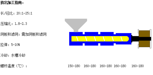 B:建议加工该材料之前、之后,用专用清机料清洗螺杆或模头。