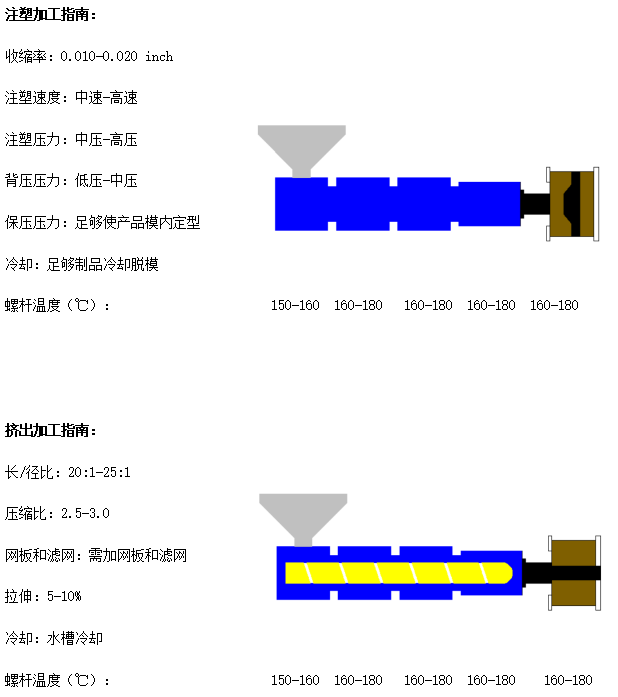 B:建议加工该材料之前、之后,用专用清机料清洗螺杆或模头。
