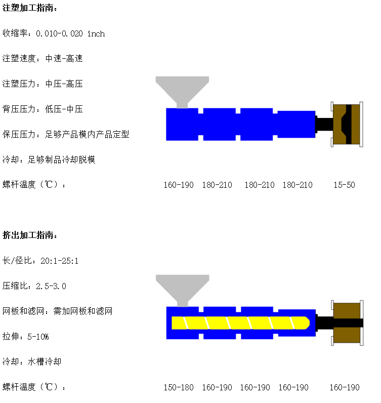 B:建议加工该材料之前、之后,用聚丙烯或聚乙烯清洗螺杆或模头。