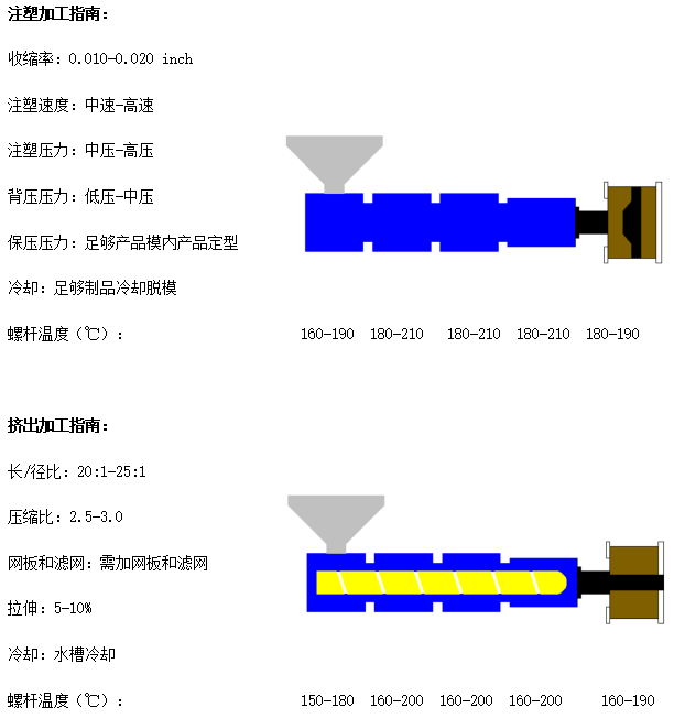 B:建议加工该材料之前、之后,用专用清机料清洗螺杆或模头。